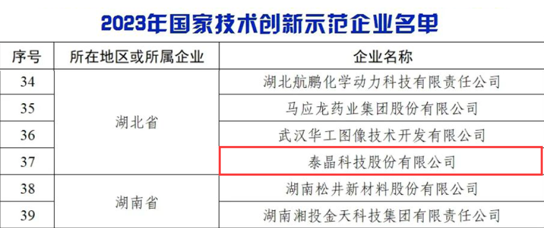 泰晶科技荣获“国家技术立异演示企业”荣誉称谓